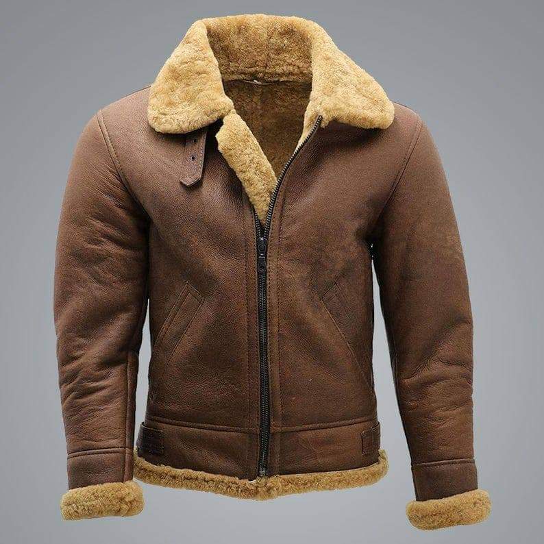 Men’s Genuine Leather Jacket with Faux Fur Collar – Winter Biker, Vintage style