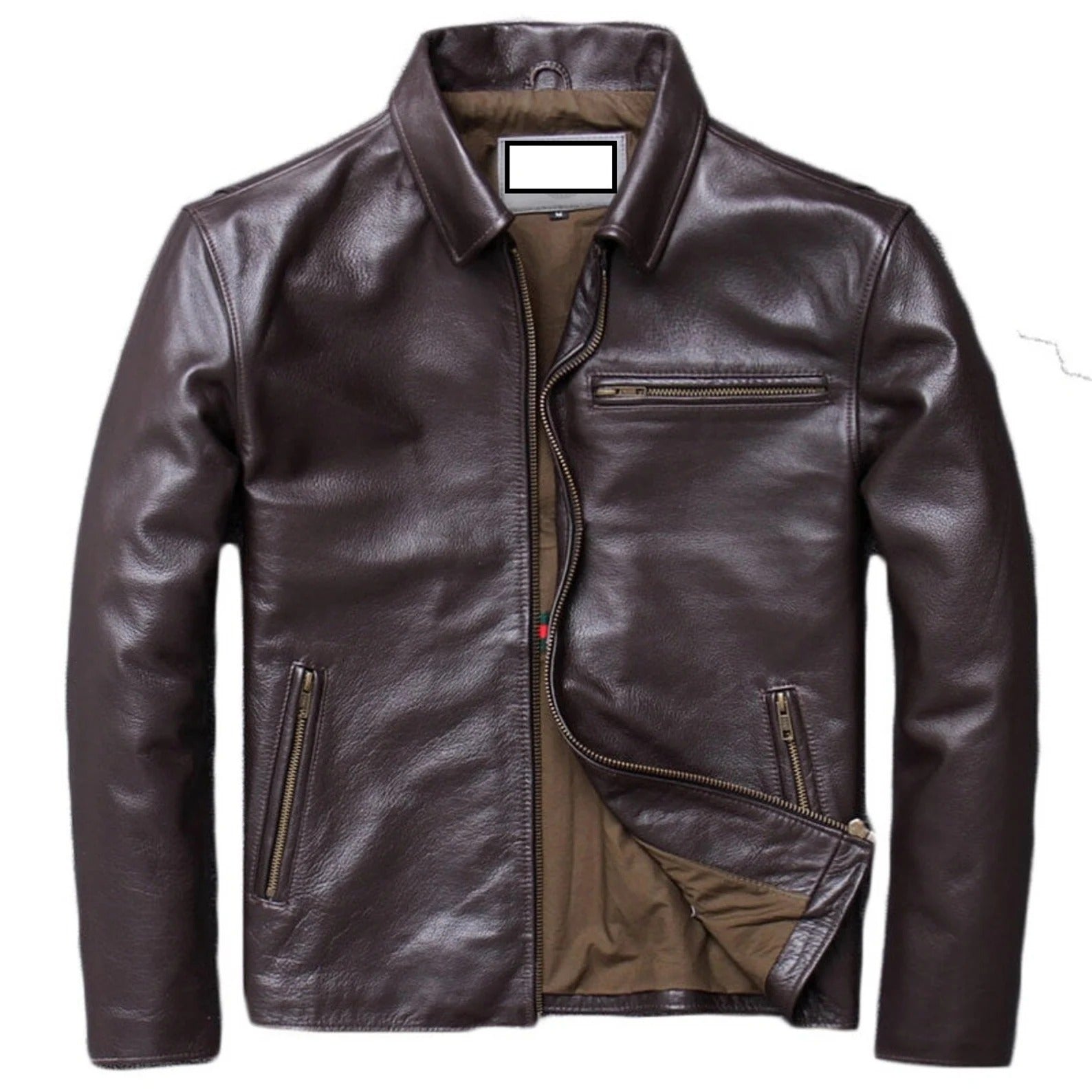 Dark Brown Leather Biker Jacket - Zipper Pockets - Stylish Outerwear
