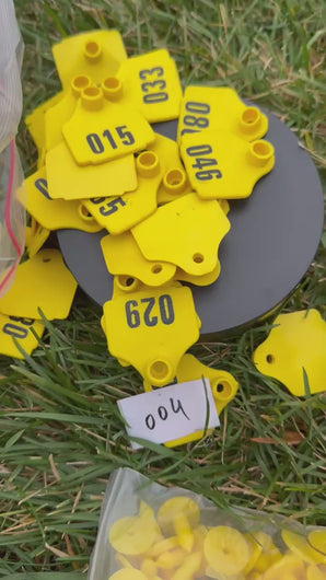 Farm TPU Livestock Eat Tags - Flexible & Weatherproof Animal ID Tags for Cattle Sheep Goats Soft TPU ID Tags - Lightweight Pet Eats Tag,(Yellow different Numbers)