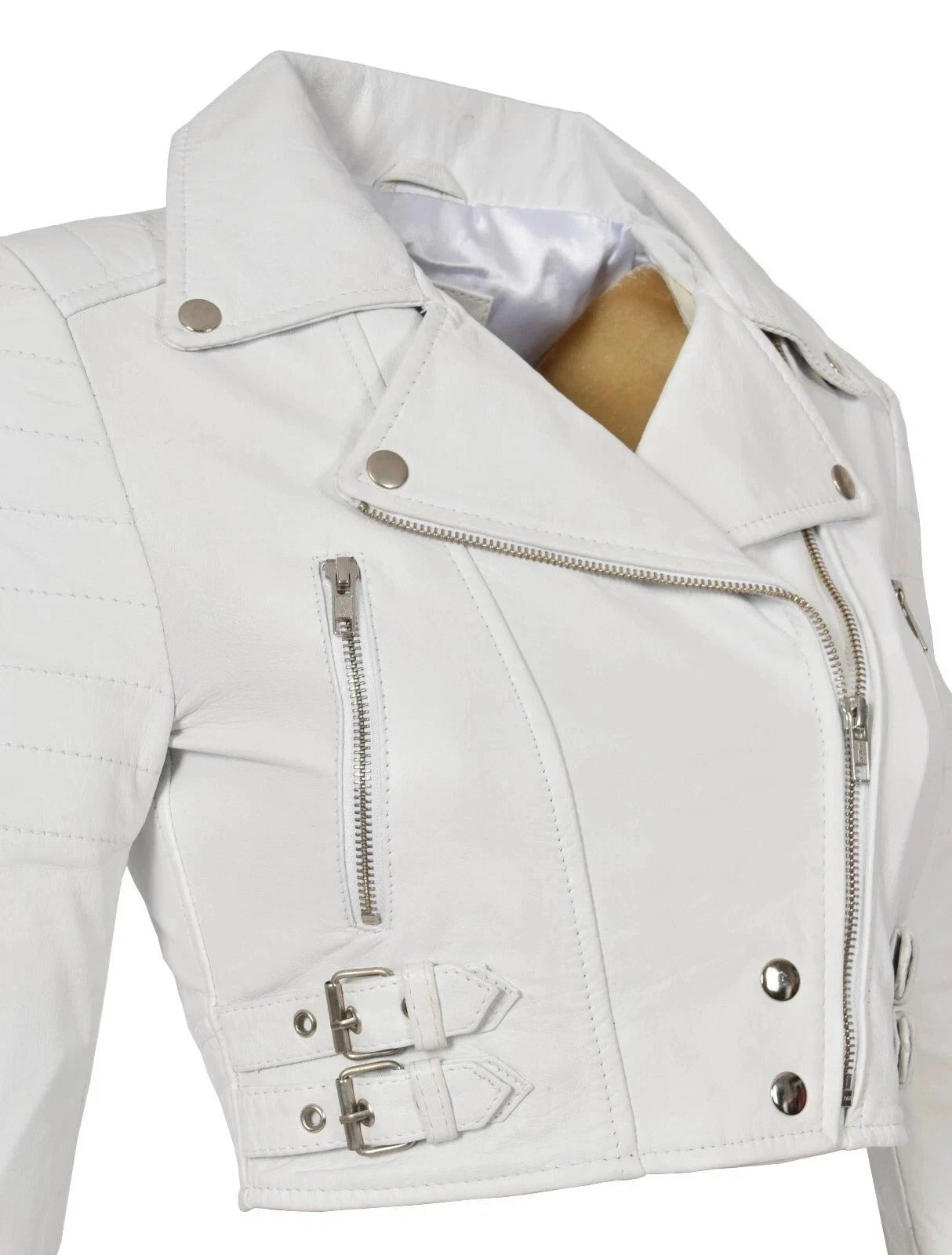 This Women’s White Cropped Biker Bustier Bolero Real Leather Jacket is a stylish and versatile piece that can be worn for various occasions such as travel, parties, casual outings, and formal events.