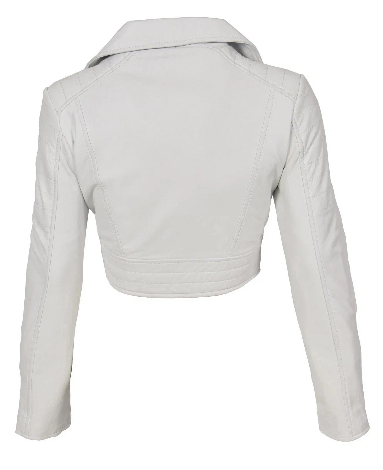 Women’s White Cropped Biker Bustier Bolero Real Leather Jacket