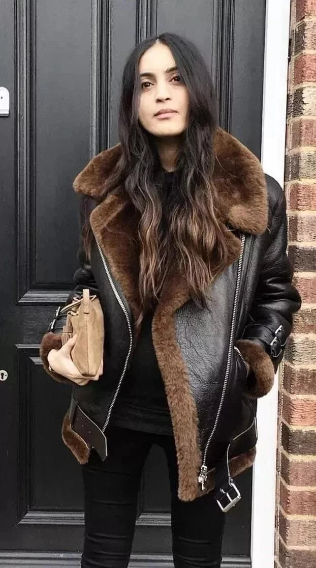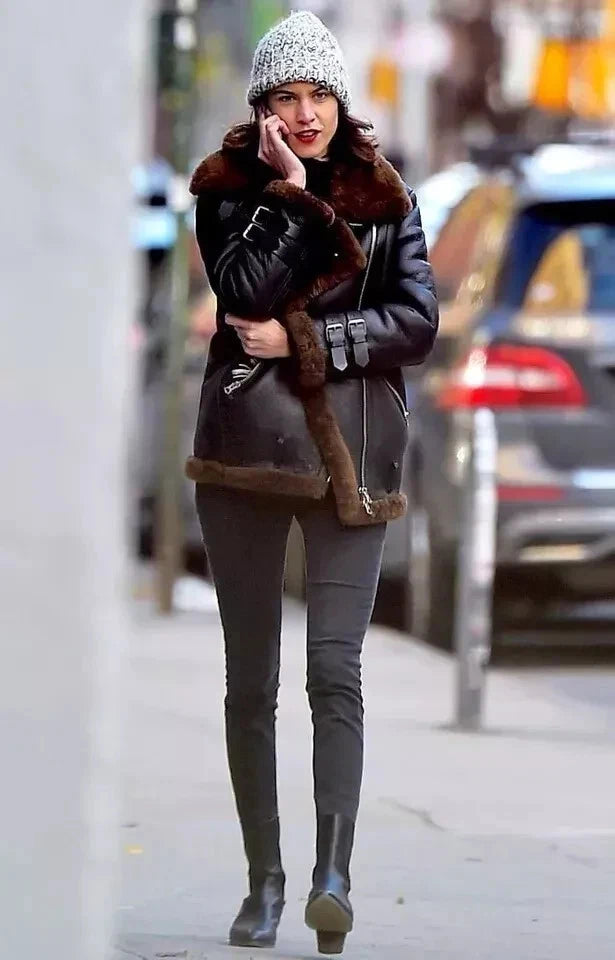 This Women's Black Real Sheepskin Leather Bomber Jacket with Premium Shearling is a luxurious and stylish outerwear piece perfect for various occasions including parties, casual outings, and formal events.